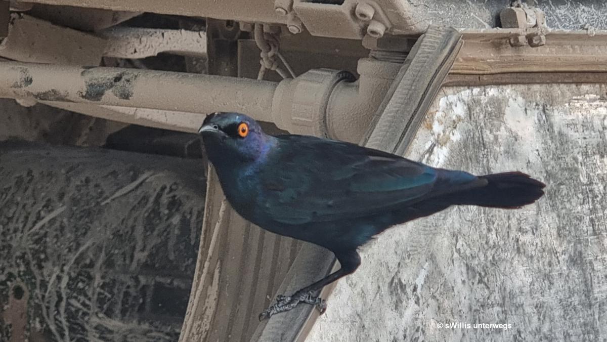 Schon seit ein paar Tagen ist uns aufgefallen, dass ein Keilriemen am Morgen, wenn es noch kalt ist, quitscht – also zu Namib Campers, da wollten wir eh noch hin. Stefan nennt uns eine Werkstatt, wo wir das kontrollieren lassen können. Jedoch – warum in die Werkstatt, das kann Armin auch selber machen … also zurück zur Alten Brücke – wir haben Glück, «unser» Platz ist noch frei … Führerkabine ausräumen, Reservereifen und Kuhfänger lösen, herunterkippen und mit einem Balken unterstellen, Kabine kippen, in den Overall schlüpfen – nur um zu merken, dass alle Keilriemen gut gespannt sind und keiner Nachspannung benötigen …??? Na ja, also das ganze Prozedere wieder zurück, alles scheinbar in Ordnung. Leider merken wir am nächsten Morgen (und auch an allen weiteren Morgen), dass immer noch ein Keilriemen quitscht (es muss der von der Klimaanlage sein) … so lange es nur am Morgen kurz tönt, lassen wir dass momentan eben so … wenn wir in Windheok sind, kann das immer noch beim Namib Truck Center (nochmals) kontrolliert werden.